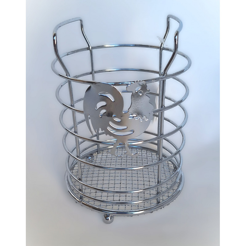 Ajoutez une touche décorative et pratique à votre cuisine avec ce porte-ustensiles en métal chromé au style campagne chic. Son design ajouré avec un coq découpé apporte du charme, tout en permettant une bonne aération des ustensiles.