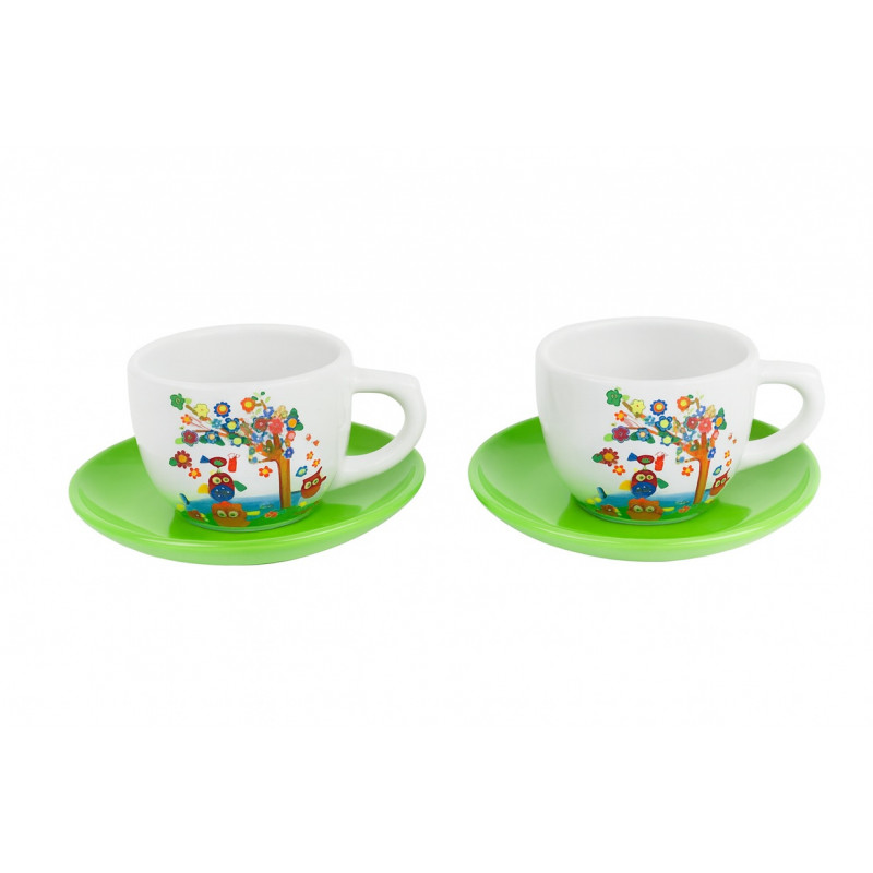 Apportez une touche de gaieté à vos pauses café ou thé avec ce charmant ensemble de deux tasses assorties et leurs soucoupes vertes. Chaque tasse en céramique est décorée d’un hibou coloré perché sur un arbre fleuri, pour une ambiance joyeuse et printanière. Solides et faciles à entretenir, elles conviennent aussi bien pour un usage quotidien que pour un cadeau original.