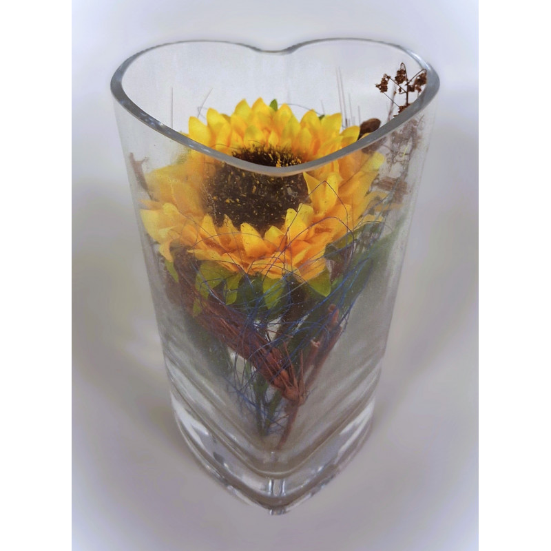Apportez une touche de douceur et d’élégance à votre intérieur avec cette composition de fleurs artificielles présentée dans un vase en verre en forme de cœur. La fleur centrale, accompagnée de feuillages décoratifs, crée un effet naturel et lumineux, idéal pour décorer une table, une chambre, une entrée ou un bureau.. 4 modèles au choix (A, B, C ou D)