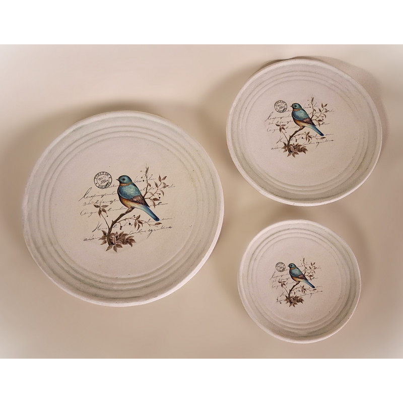 Apportez une touche douce et naturelle à votre décoration avec ce joli ensemble de trois plateaux en céramique assortis. Chaque plateau est orné d’un bel oiseau délicatement illustré, posé sur une branche, dans un style poétique qui s’intègre facilement dans tous types d’intérieurs : ambiance campagne chic, déco bohème ou esprit maison chaleureuse.