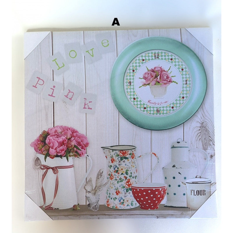 Apportez une touche de charme printanier à votre intérieur avec ces toiles sur châssis en bois représentant de jolies compositions florales accompagnées d’une horloge rétro. Ces tableaux évoquent l’ambiance douce et lumineuse d’une cuisine ou d’un salon de campagne, parfaits pour créer une décoration chaleureuse et pleine de fraîcheur. 2 modèles au choix (A ou B)