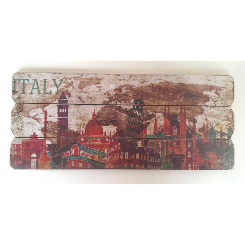 Apportez une touche déco chaleureuse et inspirante à votre intérieur avec ce cadre mural en bois illustrant l’une des grandes villes emblématiques : Paris, London, New York ou Italy. Chaque modèle présente une composition colorée au style vintage, avec les monuments et silhouettes architecturales caractéristiques de la ville choisie.. 4 modèles au choix