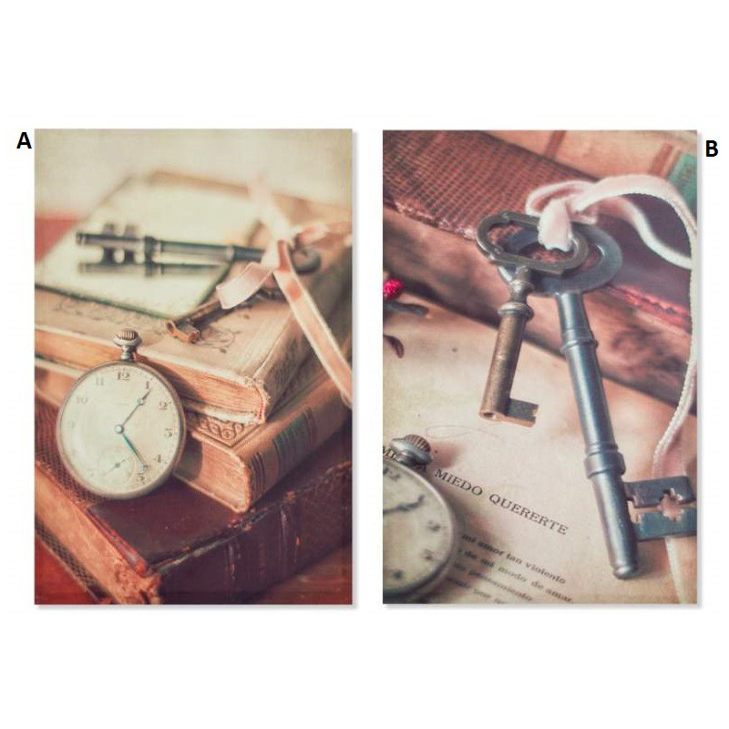 Tableau toile Clés et livres - rétro. 2 modèles au choix (A ou B)