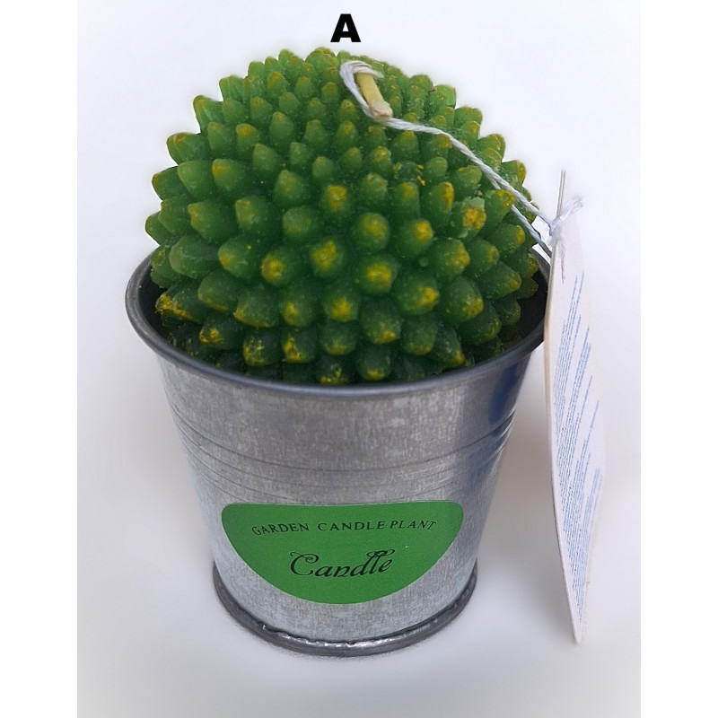 Apportez une touche originale et naturelle à votre décoration avec cette bougie en forme de cactus logée dans un petit pot en métal effet zinc. À la fois charmante et insolite, elle imite à merveille une plante grasse tout en diffusant une lumière douce et apaisante. 3 modèles au choix (A, B ou C)